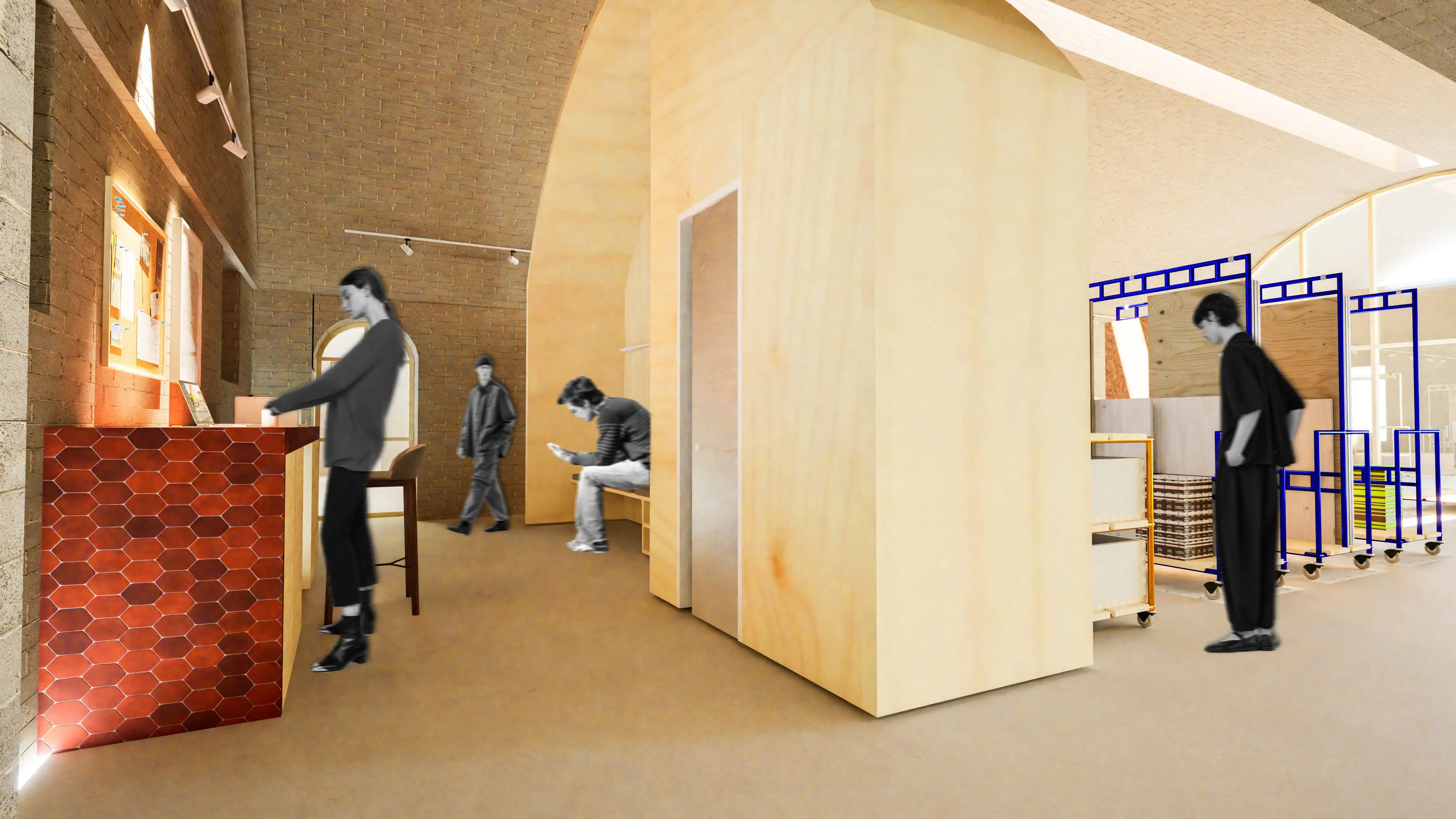 Penser ce système comme circulaire pour faire fonctionner des pôles d’activités corollaires : la résidence d’architectes-designers opérant sur le réemploi, le centre de réception et de tri, la mise en archives et stockage, le centre d’expertise, et la mise en vente par enchères des “éléments” archivés ou créés sur place.