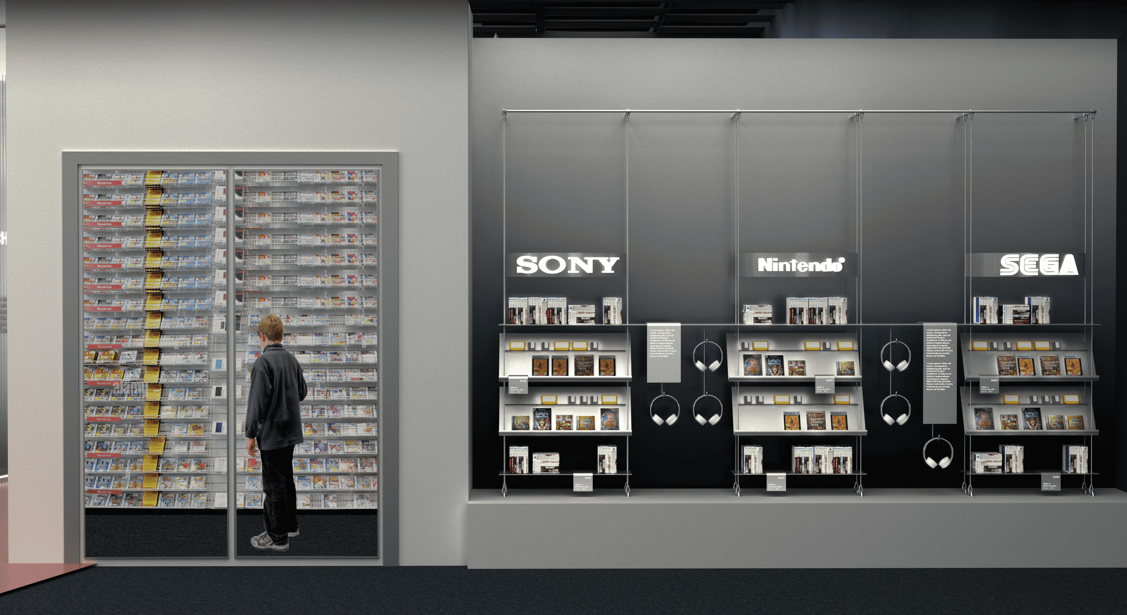 Video game music is a universal language. It conveys emotions and memories, connecting players through timeless melodies. In 2026, the Philharmonie de Paris will celebrate video game music and the different forms its has taken over time. To chronicle this evolution, a diagonal line runs along both sides of the exhibition in a gradient of colours. This central axis, designed as a guiding thread, leads visitors through the sound story of this universe. It is introduced by polycarbonate light modules that animate the visit, bringing video game music to life. The visitor experience of exploring this sound installation is designed as an adventure full of hurdles that unfolds progressively.