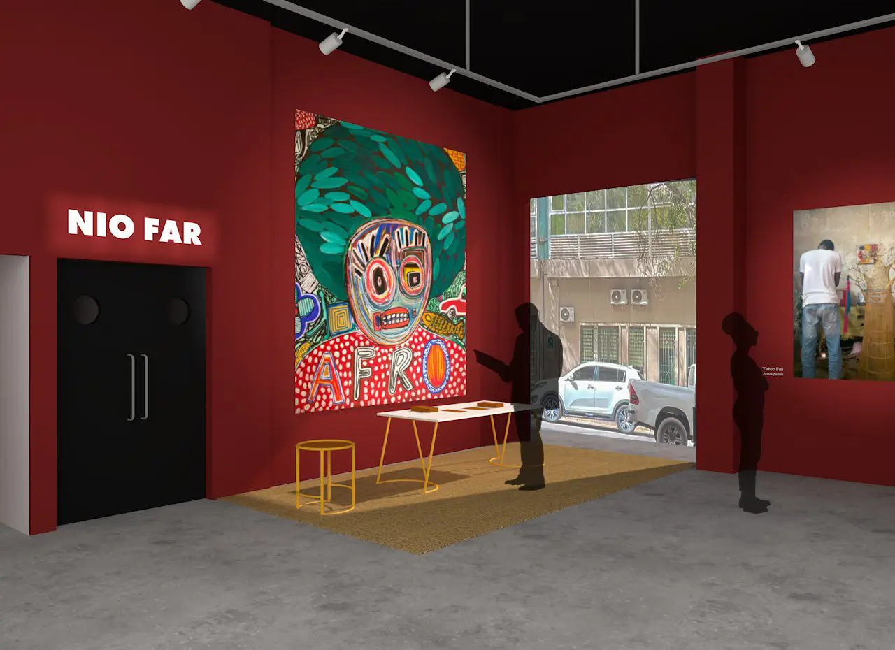 À droite, l’artiste plasticien Yakob Fall, dans son atelier