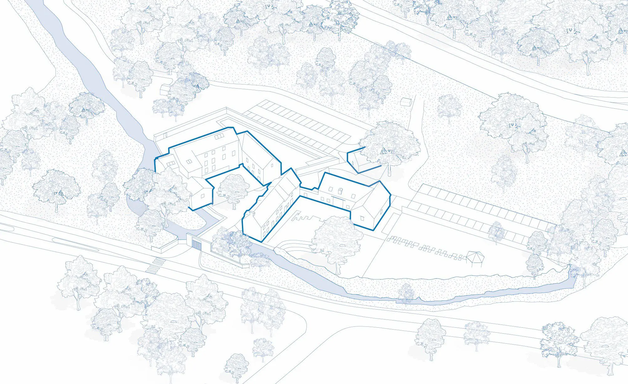Along the Yvette in Saulx-les-Chartreux, a project is taking shape on the riverbank using a thoughtful and systematic approach. With a committed approach, I propose the creation of a network of organisations. Broadcasting like a wave, it depends on the SIAHVY mill as the source and heart of the system.