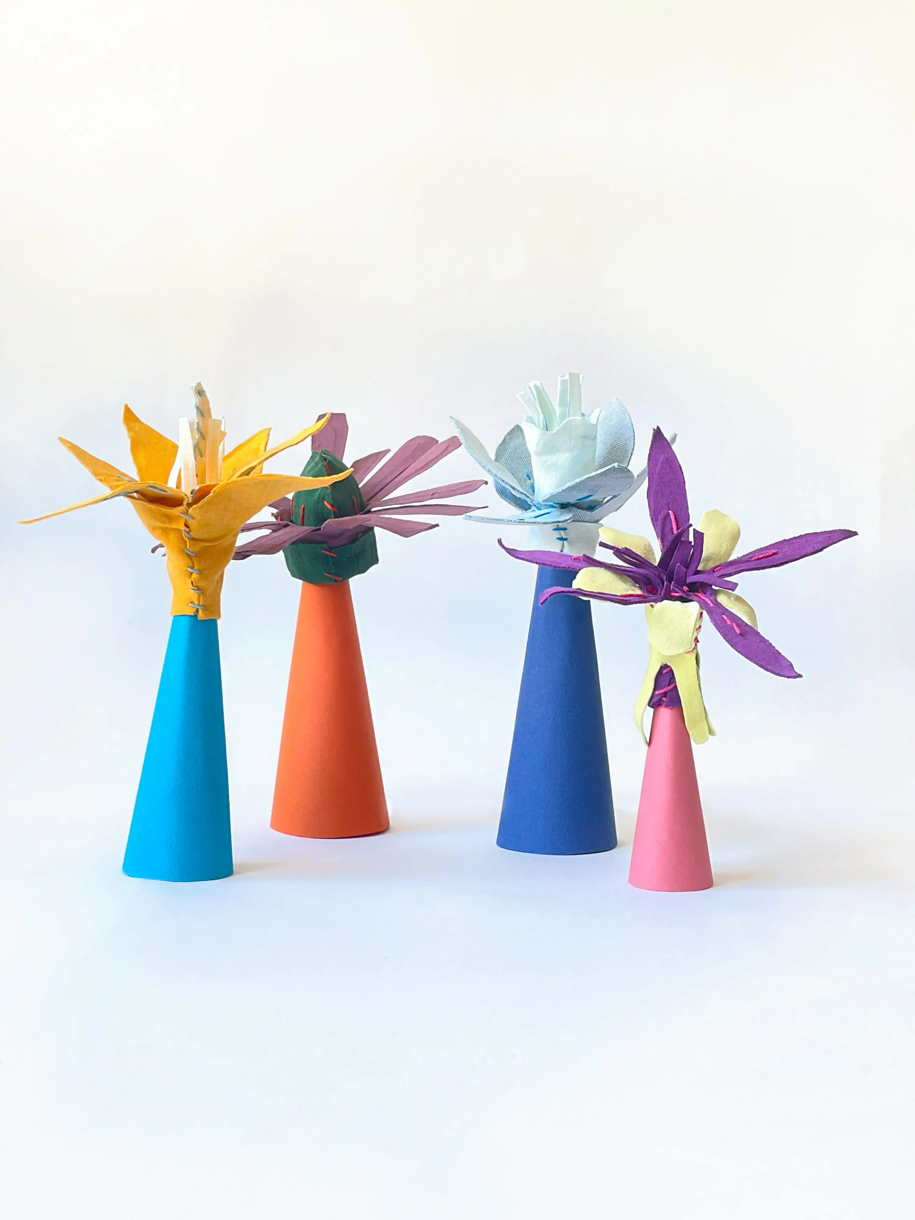This educational fabric flower assembly kit is designed for children aged 7 and above for distribution in educational settings. After collecting used clothes from households, the tools included are used to learn how to draw, cut, sew and assemble elements that, once combined, will form a beautiful garden. This collaborative participatory project provides children with the opportunity to explore a diverse range of subjects, from biology to practical skills.