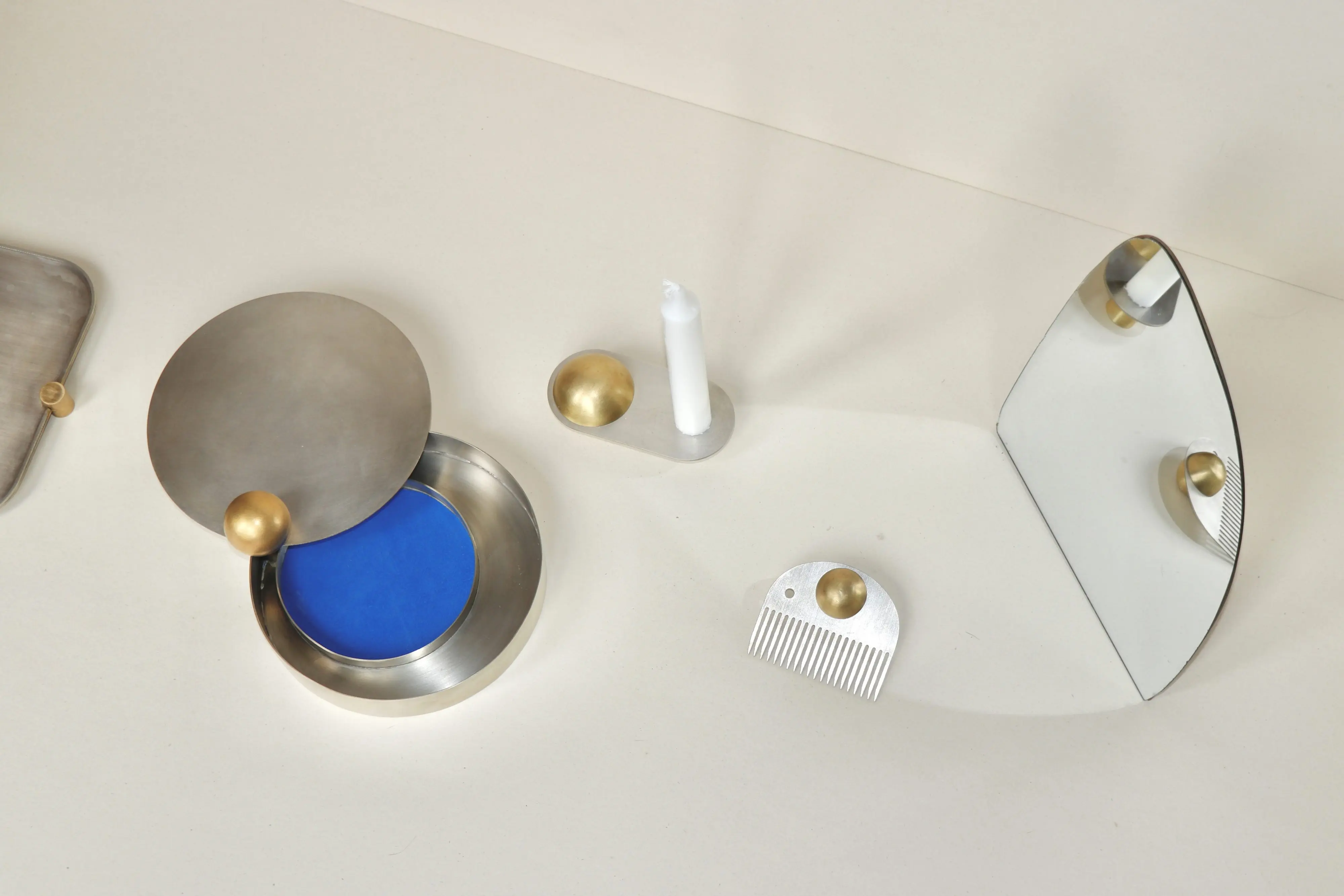 "Épure" features a collection of personal objects — a mirror, box, candle holder, comb and side table — designed to inhabit personal spaces. Their geometric forms, fundamental and silent, are etched into space like architectural outlines, probing the role of the sensory in pure, elemental forms, devoid of ornamentation.