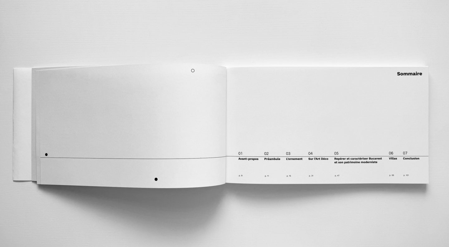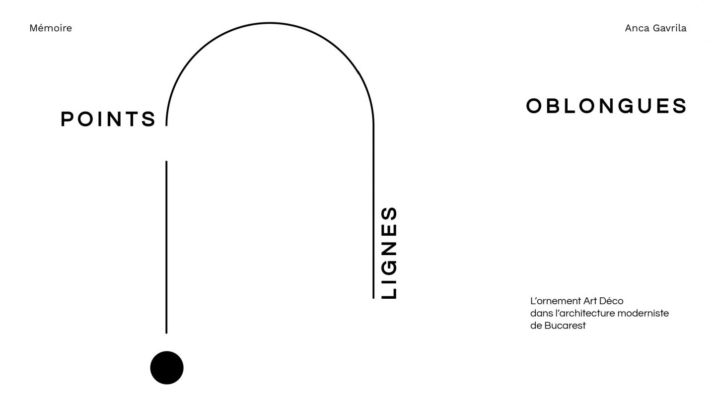 Points. Lignes. Oblongues est un écrit qui aborde l'idée de l'ornement, avec une attention particulière portée à l'ornement Art Déco. Il représente une conciliation entre ce qu’incarnait la tradition et le courant moderniste, plus austère et radical. C'est à cet aspect que nous devons une multitude de nouvelles formes, de nouveaux motifs et une nouvelle vision de l'ornement. De l’Entre-deux-guerres à nos jours, de nombreux créateurs ont réinterprété ce langage formel. Ayant vécu quelques années à Bucarest, la capitale de la Roumanie, j'y ai découvert un vaste patrimoine de bâtiments Art Déco souvent méconnus. J’ai souhaité approfondir cette analyse et explorer les particularités du style à Bucarest, à travers l’étude de cinq villas que j’ai choisies.