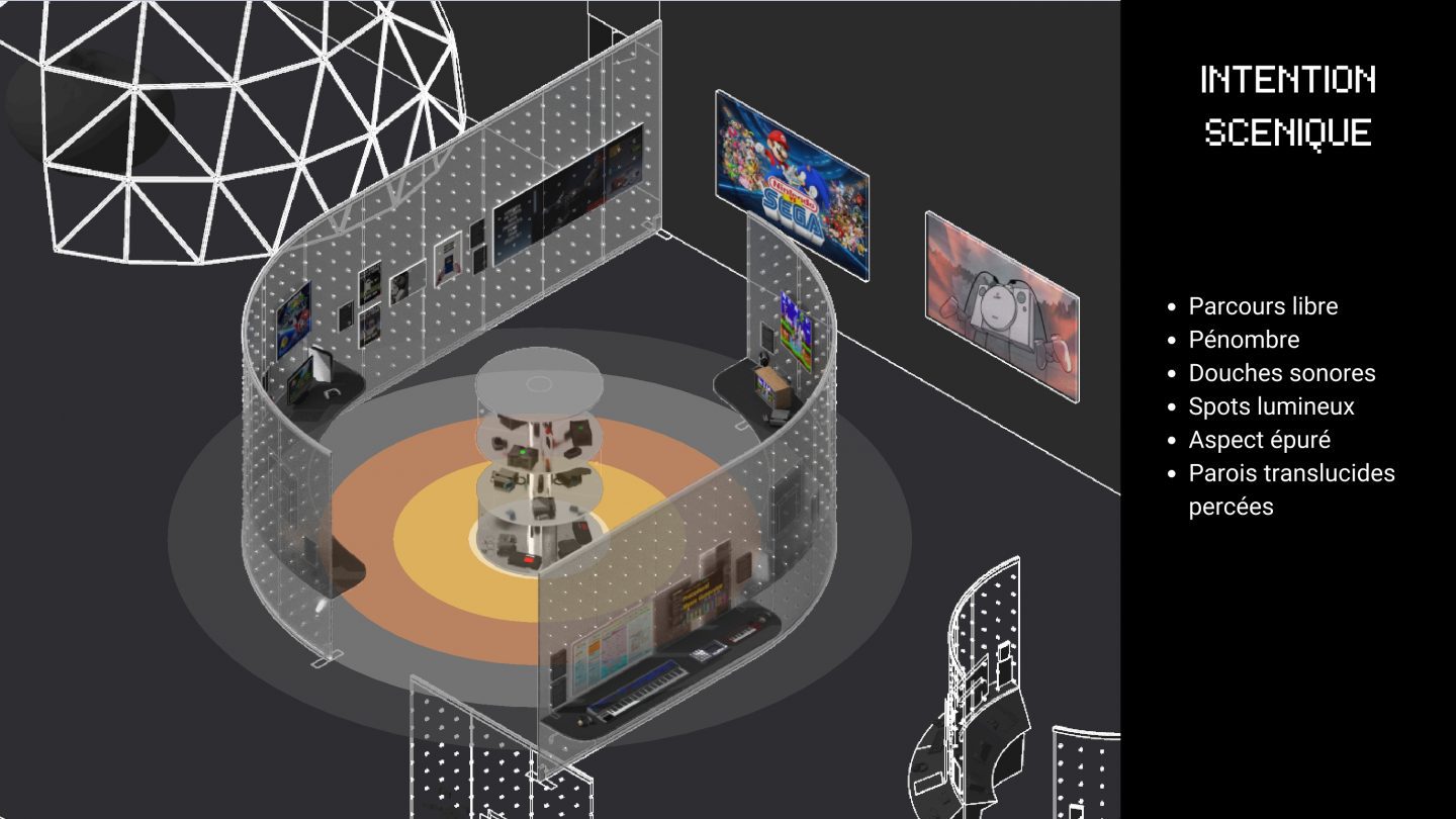 L’ilôt Dolby Atmos prend la forme d’un dome géodésique pour évoquer la bulle sonore qui enveloppe l’utilisateur de ce système audio à 360°.