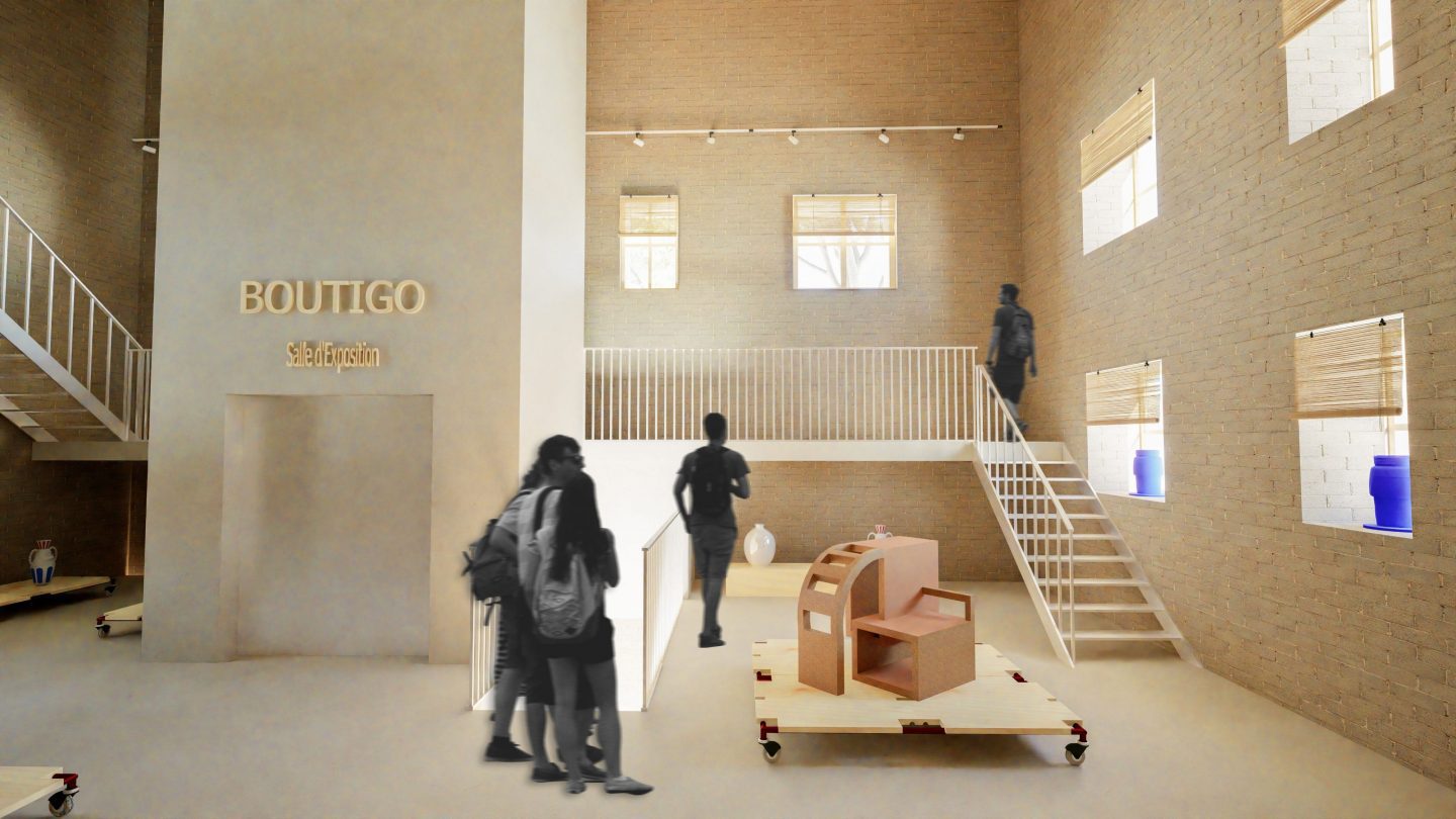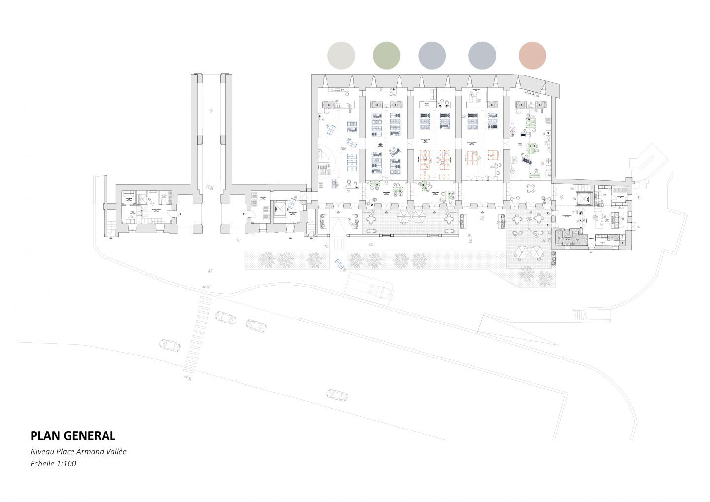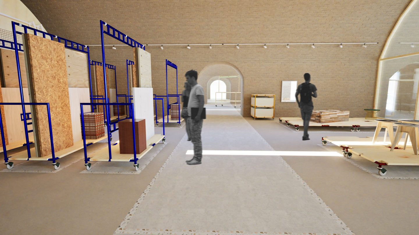 Penser ce système comme circulaire pour faire fonctionner des pôles d’activités corollaires : la résidence d’architectes-designers opérant sur le réemploi, le centre de réception et de tri, la mise en archives et stockage, le centre d’expertise, et la mise en vente par enchères des “éléments” archivés ou créés sur place.