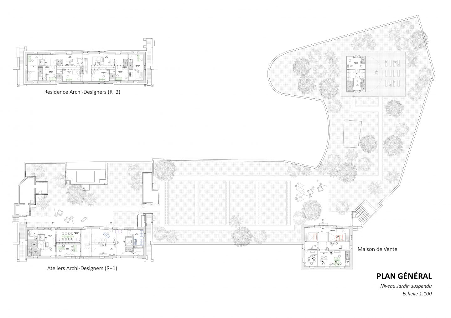 Séquencer les espaces horizontalement et verticalement, créer des ouvertures entre les bâtiments pour mettre en perspective et fluidifier la circulation des personnes, des matériaux et des œuvres articule notre projet.