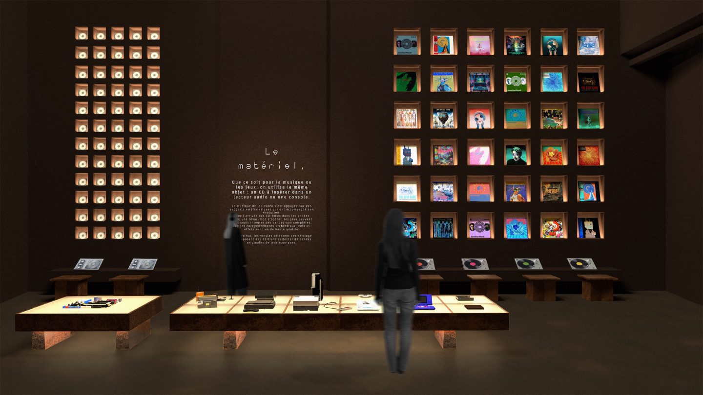 Le casque fonctionne grâce à des capteurs placés à proximité des dispositifs. Le visiteur entend des musiques de jeux vidéo, des interviews de leurs compositeurs, ainsi que des explications. Au niveau du son Pong, les visiteurs sont invités à retirer leur casque pour profiter d’un espace immersif et collectif.