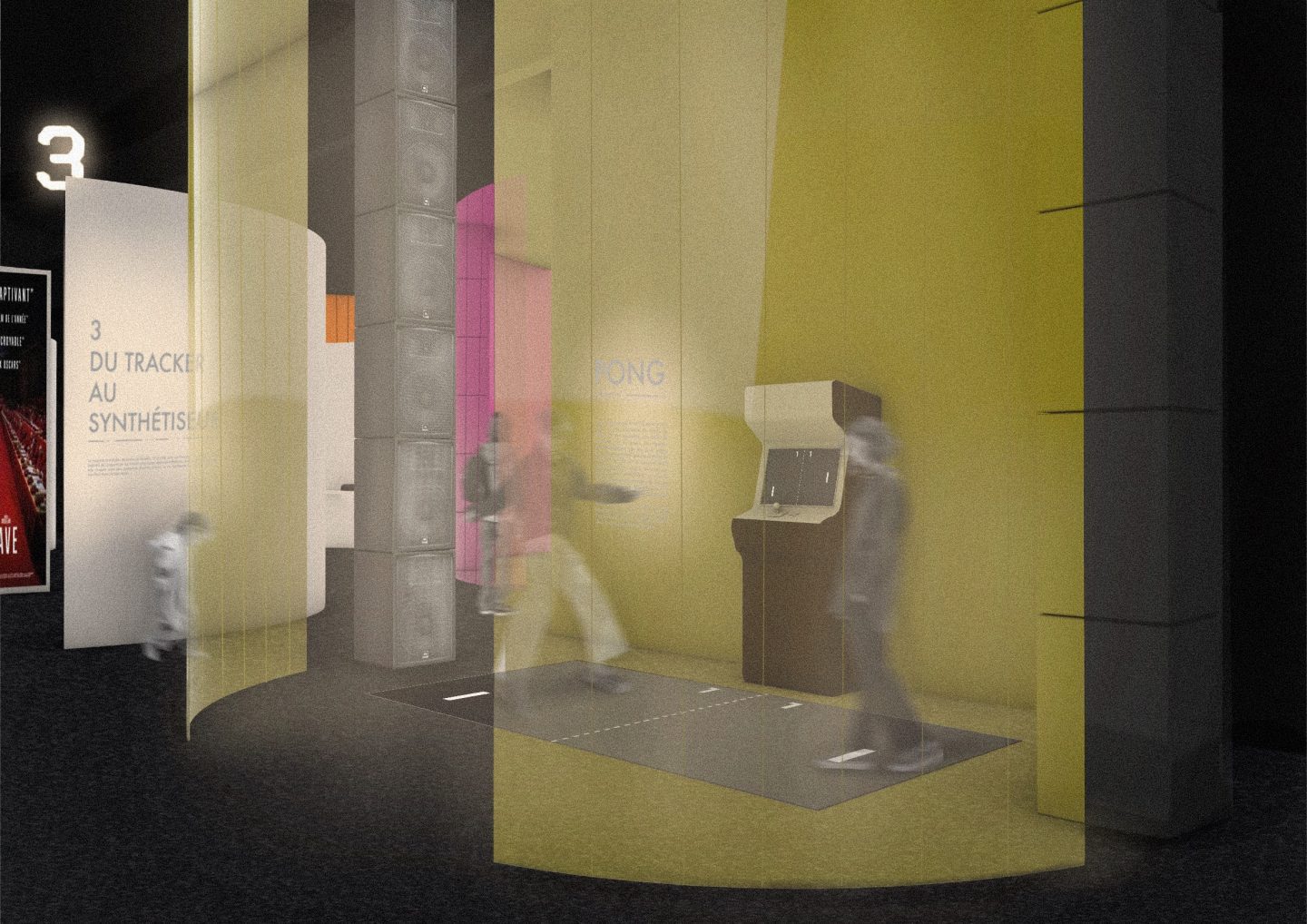 Les zones d’écoute individuelle se font au casque tandis que les zones d’écoute collective se font grâce à des colonnes d’enceintes qui délimitent clairement les espaces communs. Chaque jeu a été étudié et écouté pour que les visiteurs bénéficient d’une écoute optimale, qu’elle soit intime ou partagée, pour plonger dans l’univers du jeu.
