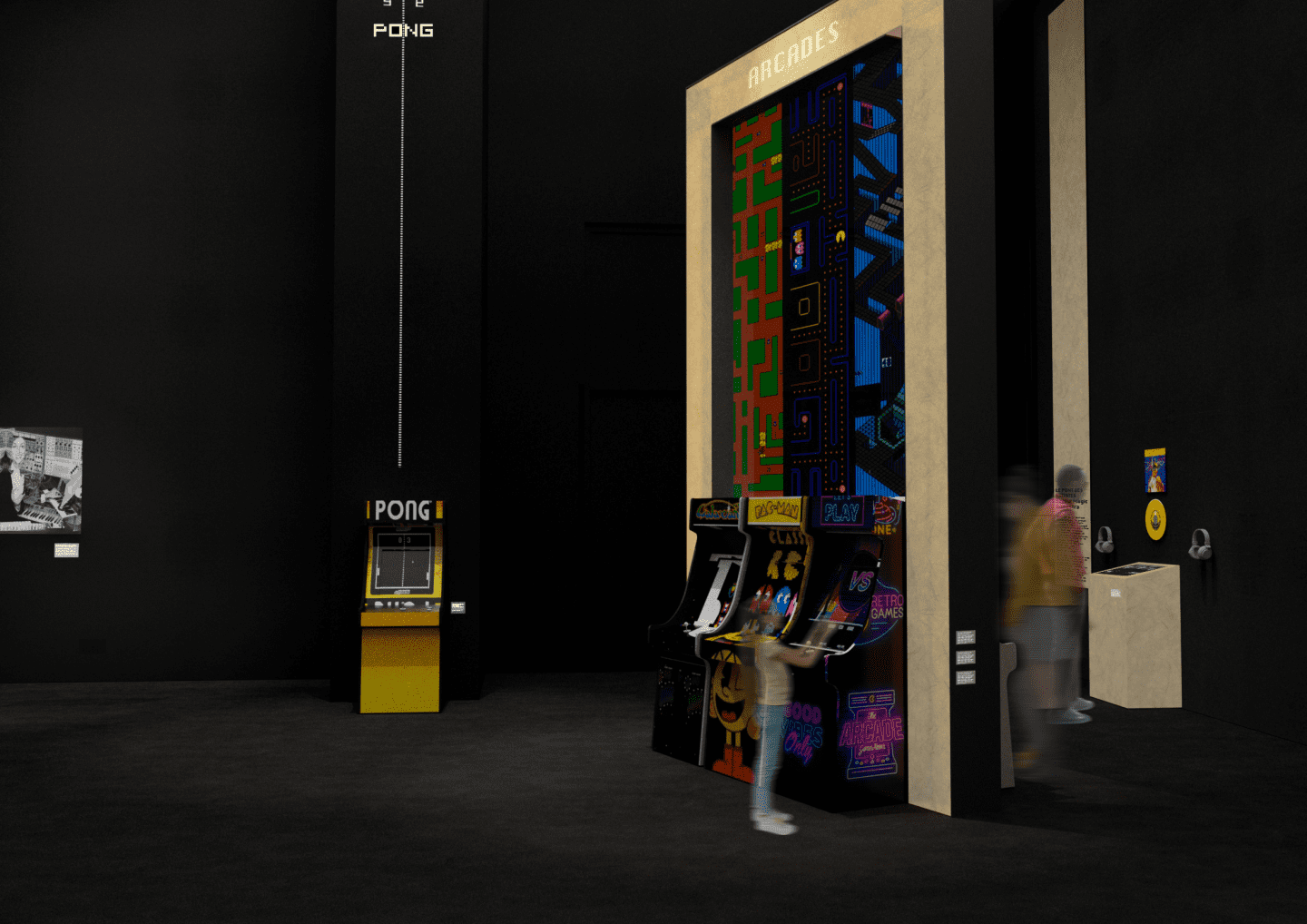 – un espace interactif, qui invite le visiteur à s’immerger dans l’univers des jeux vidéo en y jouant directement