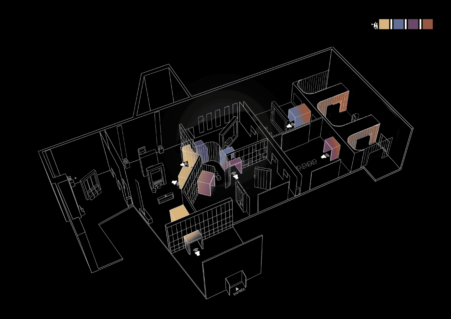 Des transitions sonores interactives donnent aux visiteurs des indices sur le thème qu’ils s’apprêtent à découvrir.