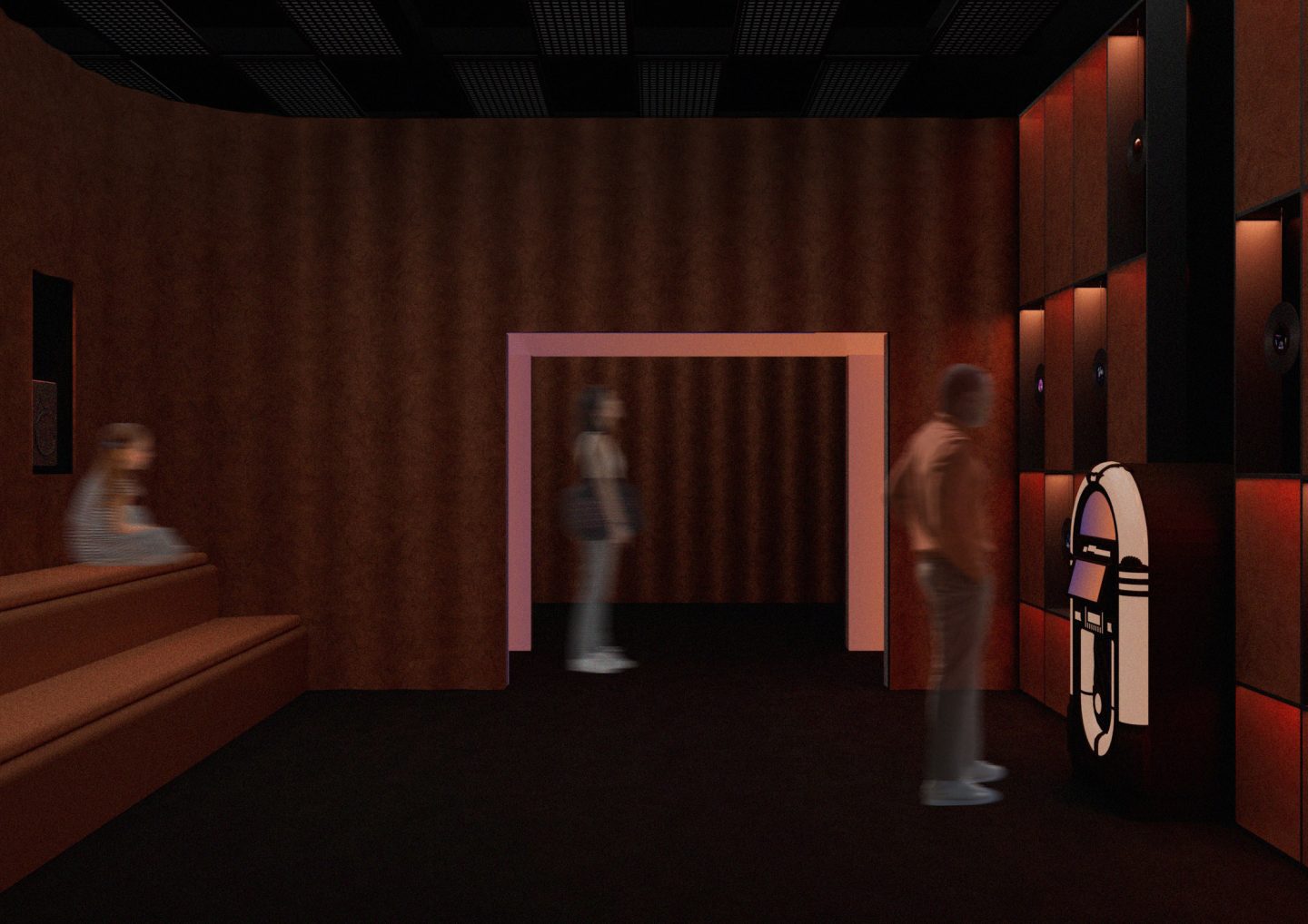 Une salle d’écoute clôture l’exposition offrant au visiteur un moment de pause pour réécouter, grâce à un jukebox, les musiques qui ont retenu son attention au cours de la visite.