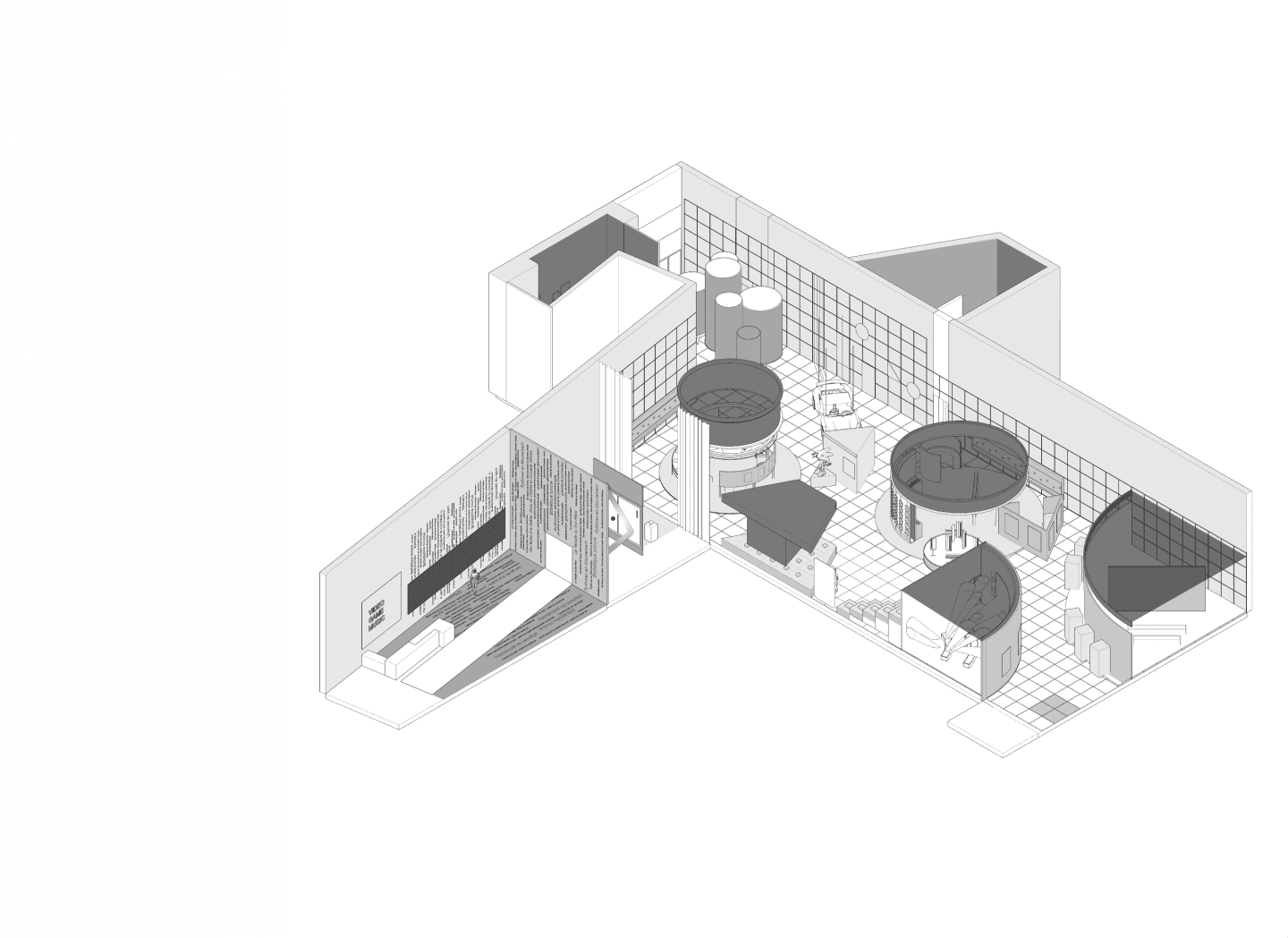 L’exposition « Vidéo Game & Music – La musique dont vous êtes le héros », intitulée No Stop Video Game, s’inspire du projet No Stop City d’Archizoom pour imaginer un univers infini. Comme cette cité sans frontières, la scénographie repose sur une matrice spatiale continue, du sol au plafond, composée de formes simples — triangles, cercles, arcs, carrés — rappelant les premières esthétiques du jeu vidéo. Cette trame propose deux niveaux de lecture : un parcours guidé retraçant l’évolution de la musique dans le jeu vidéo, et des espaces immersifs mêlant exploration sonore, manipulation d’objets, jeux et expériences sensorielles. Ce dispositif souligne le rôle central de la musique dans l’enrichissement de l’expérience vidéoludique.