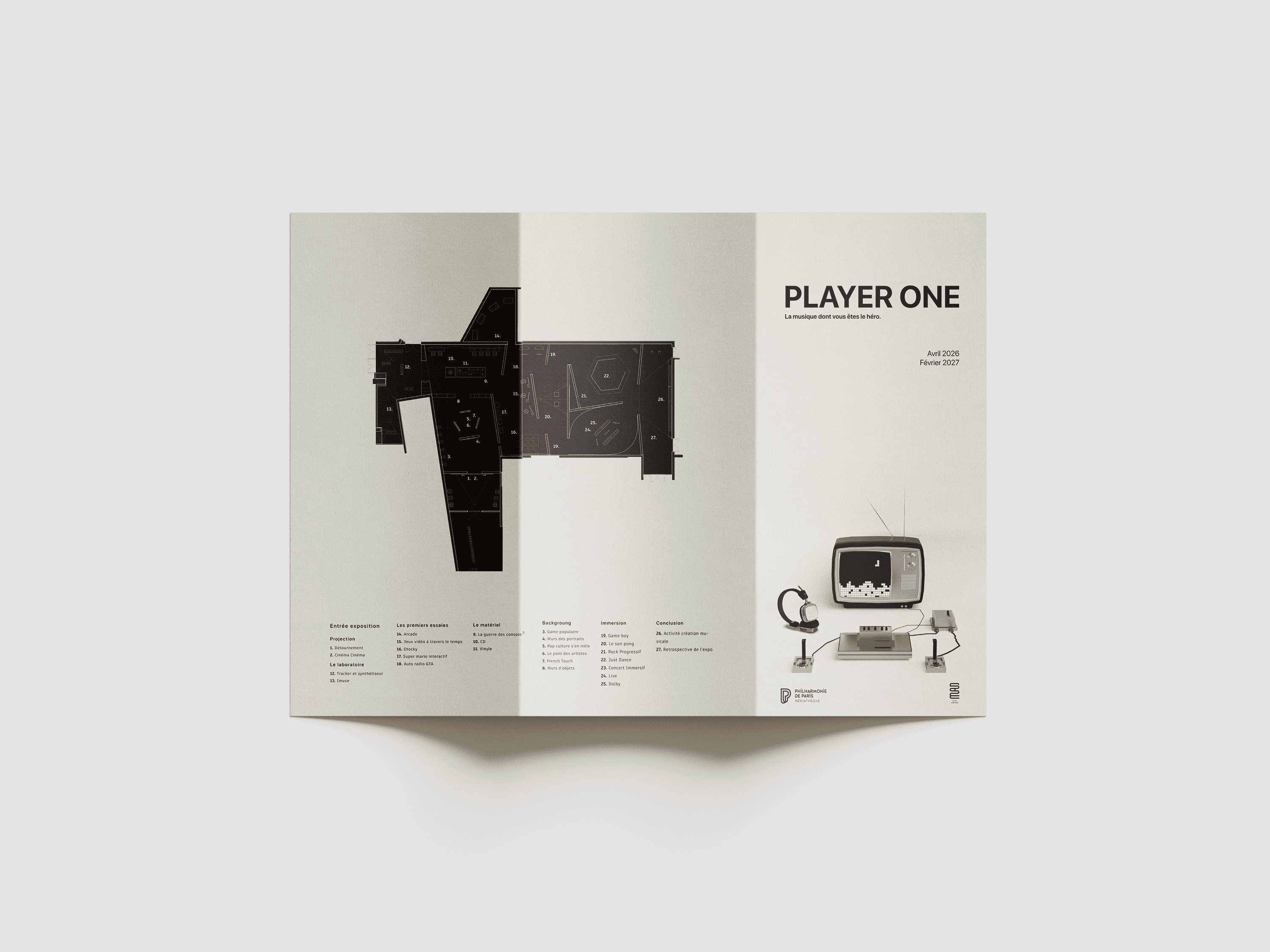 Cette exposition à la Philharmonie de Paris est consacrée à la musique des jeux vidéo. L'univers du jeu vidéo est coloré. Afin de mettre en valeur ces couleurs vives, le parti pris est de créer une ambiance