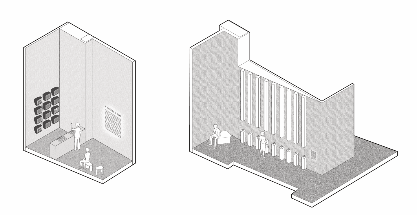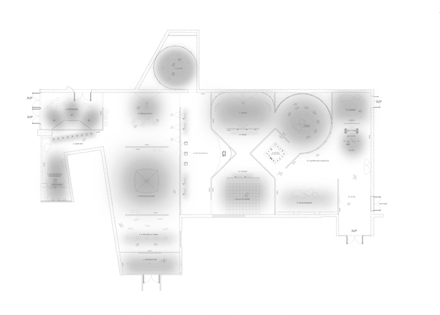 Dans l’espace notre intention se traduit par une expérience vécue en séquence qui permet au visiteur de se créer sa propre bande son durant son parcours.
