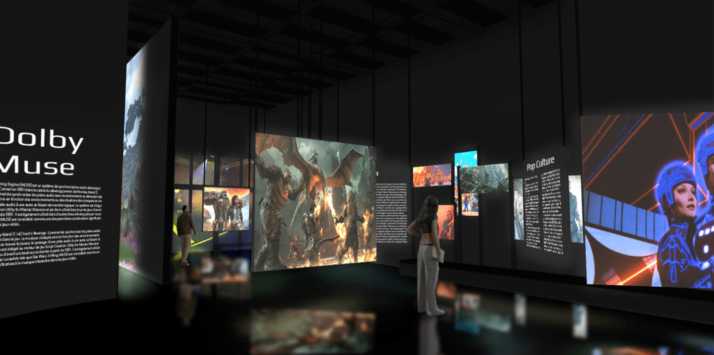 Tout au long du parcours, le son traverse chaque espace et relie jeux, époques et supports. De l’arcade néon aux costumes de performance, le visiteur suit un fil musical vivant : il l’active, le croise, le perd un instant puis le retrouve, comme un thème réinventé à chaque pas.