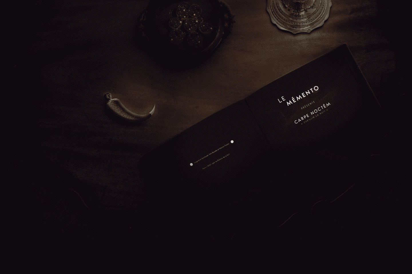 Développé comme un rite initiatique, la déclinaison d’artefacts Carpe Noctem vous accompagne dans l’intimité parallèle de la nuit. Des artefacts cérémoniaux faisant appel à tous vos sens et qui assisteront la nuit et son usagé afin d’amplifier ses plus profonds aspects matériels et immatériels.