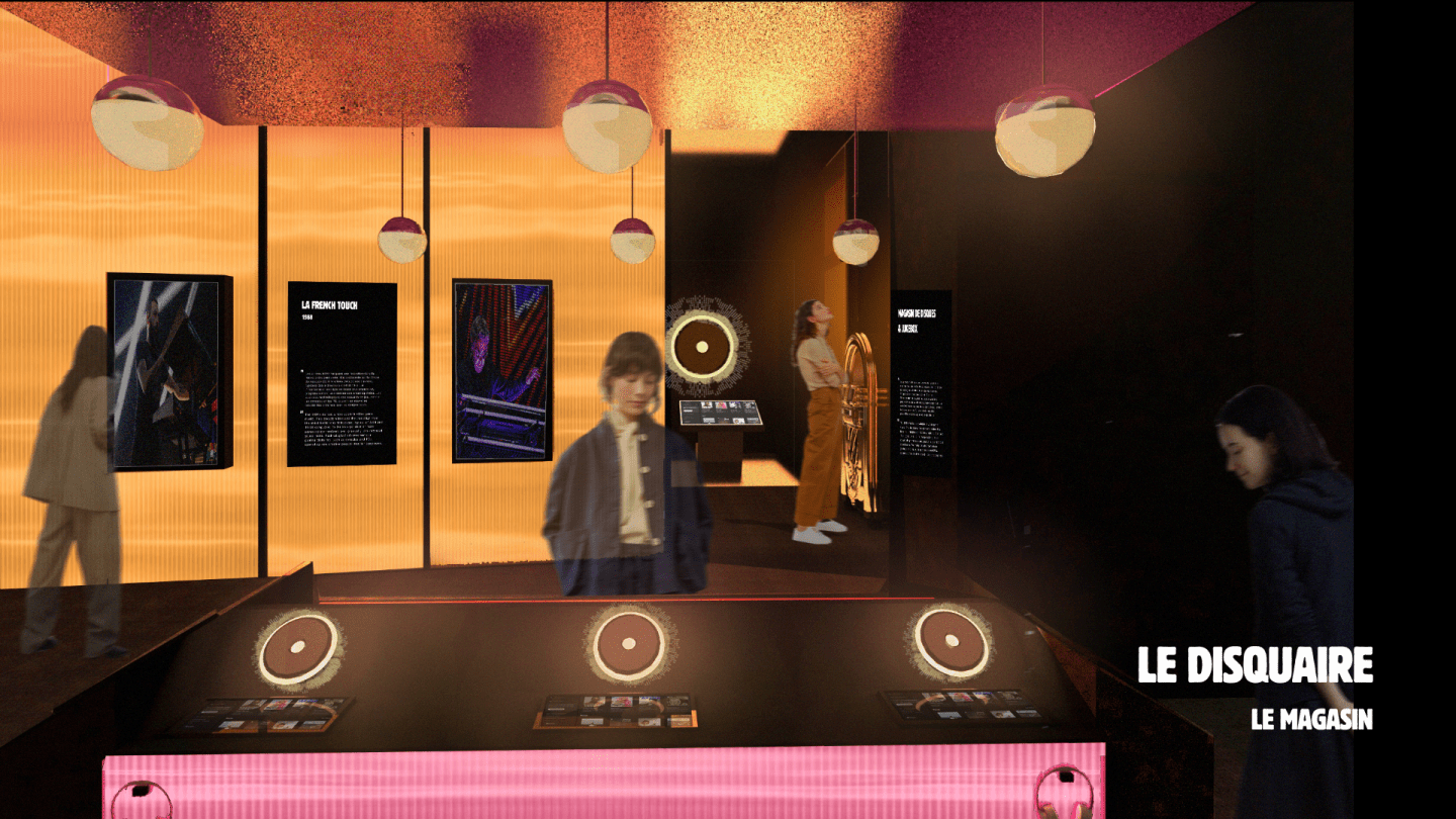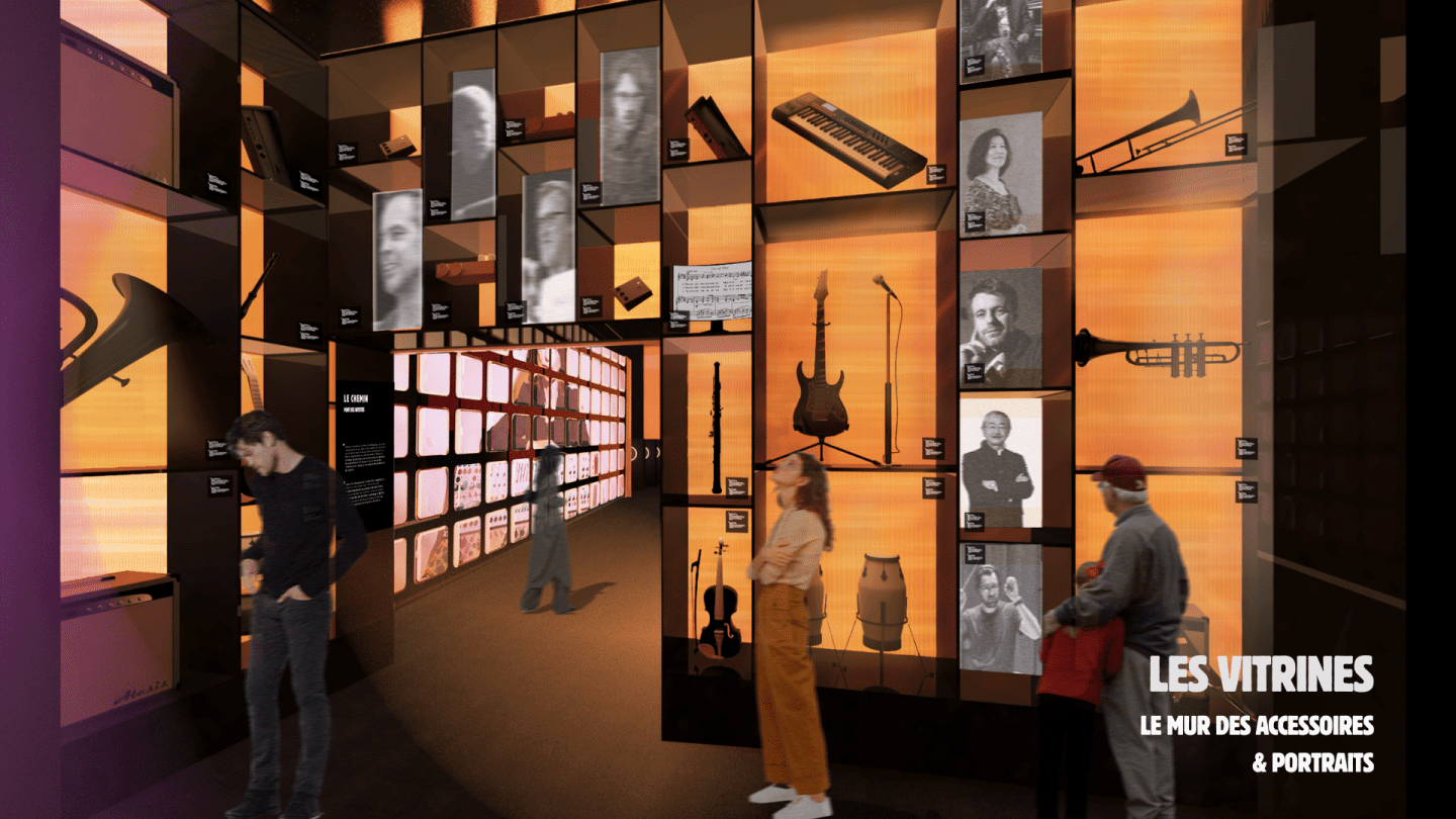 Ces îlots immersifs prennent la forme de dispositifs sonores variés : cabines d’écoute, boxes narratifs, monolithes ludiques, disquaire interactif, grand CD à manipuler, ou encore scène de concert projetée. Conçus sur mesure, ces objets scénographiques transforment la musique en matière vivante, à toucher, à expérimenter.