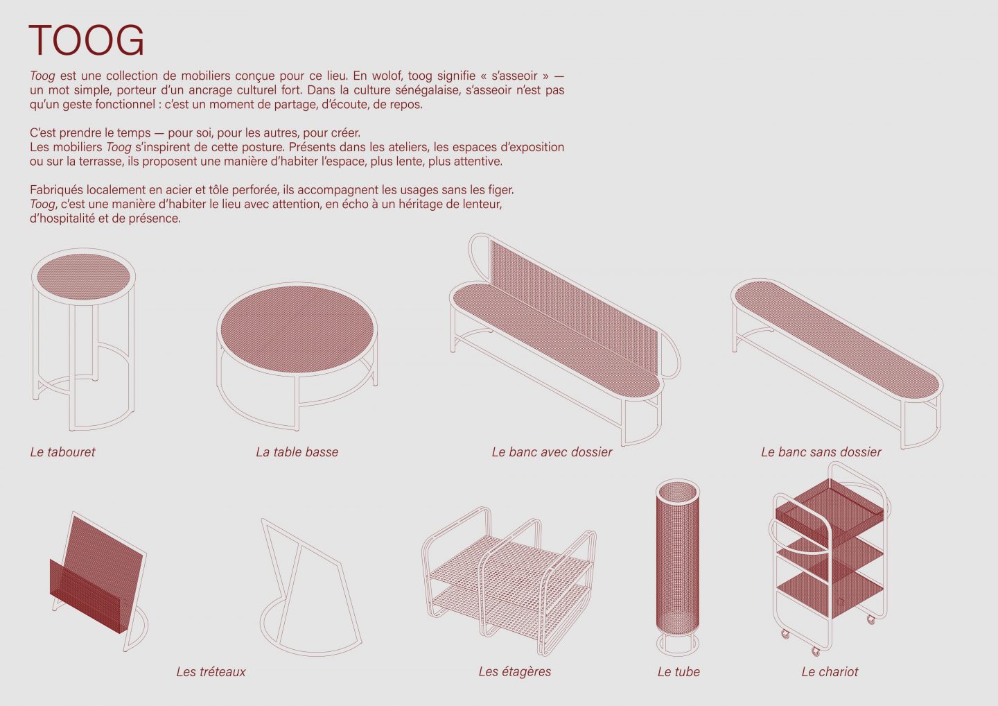 À l’ombre de ces dernières, les mobiliers créent des lieux de pause