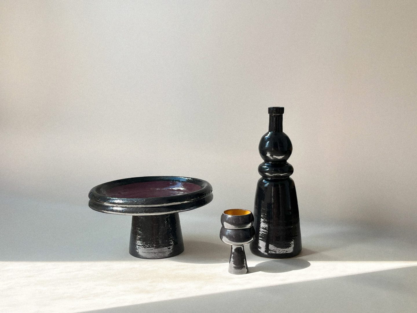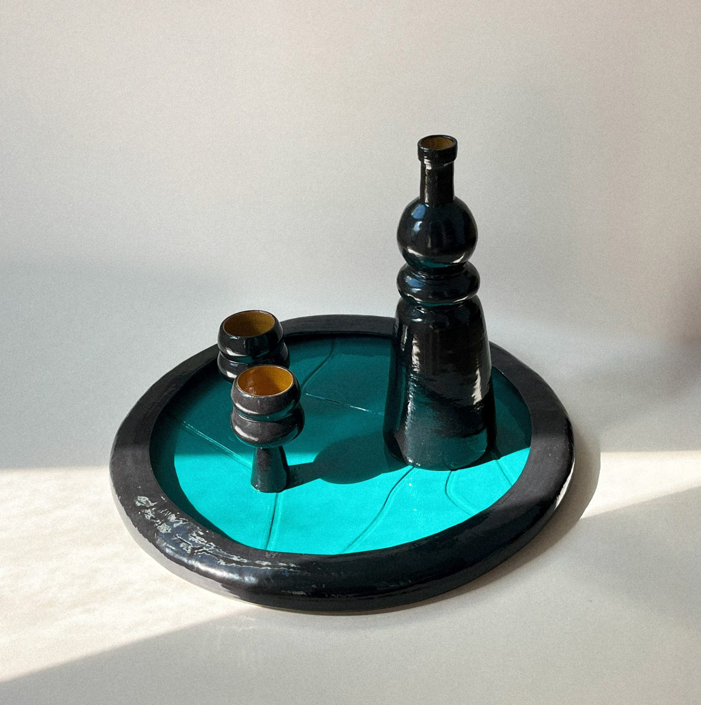 Le plateau circulaire en céramique fait écho aux mensa utilisés pendant les repas dans l’antiquité. La céramique est une matière omniprésente dans l’Antiquité, qui reste aujourd’hui un matériau contemporain. Elle me permet de créer un lien entre l’objet romain et une fabrication actuelle.