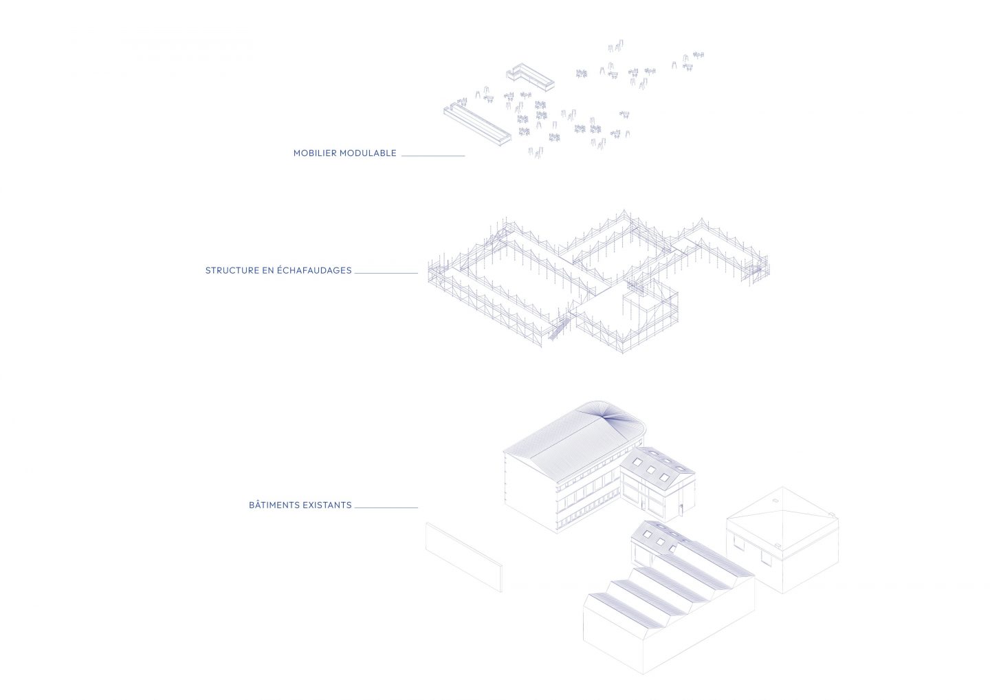 Pour continuer dans cet esprit d’adaptation de modularité, le mobilier a été conçu pour être totalement flexible, se transformant et s’assemblant selon les besoins et les envies des usagers.