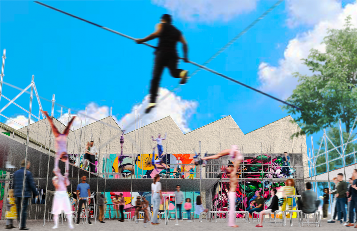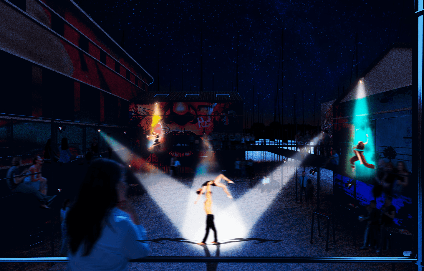 En explorant la sensibilité et le «vivre ensemble» à la croisée de l’art et de la ville, ce projet renforce le lien communautaire et l’accès à la culture pour tous. L’ambiance y est festive, à l’image d’une foire urbaine. C’est une scène temporaire et modulable où artistes et public peuvent expérimenter et interagir librement.