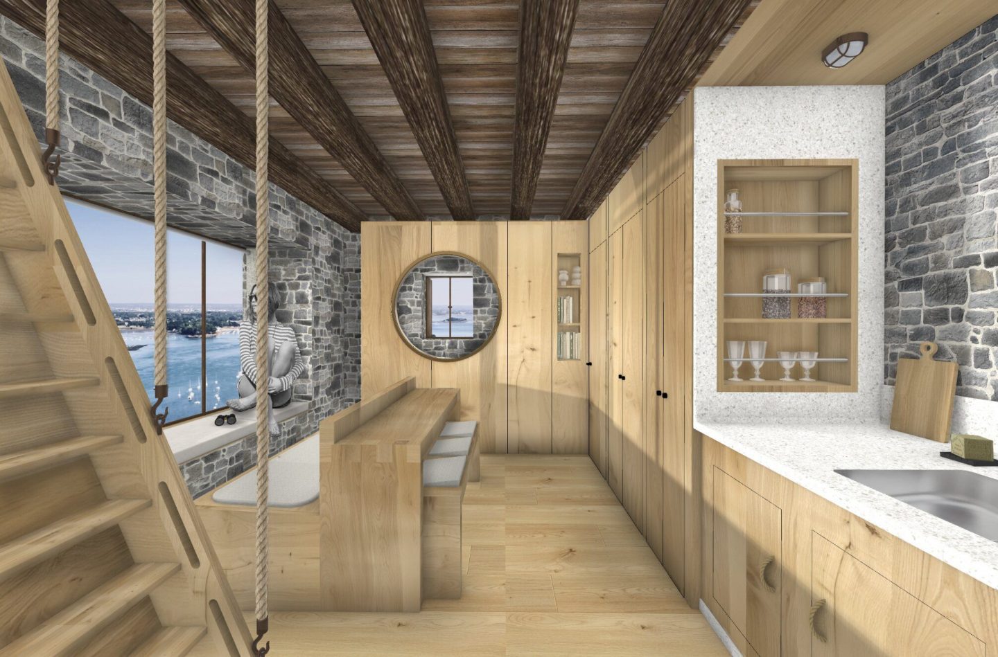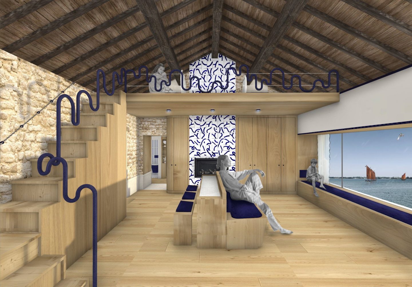 Isolée par les marées, la Tour offre une rupture radicale avec le quotidien. Ce retrait volontaire propose un mode de vie minimal, guidé par une architecture frugale, où chaque ressource est choisie avec soin. À la manière d’un Robinson Crusoé contemporain, on réapprend à explorer, s’adapter, et vivre au rythme de la nature.