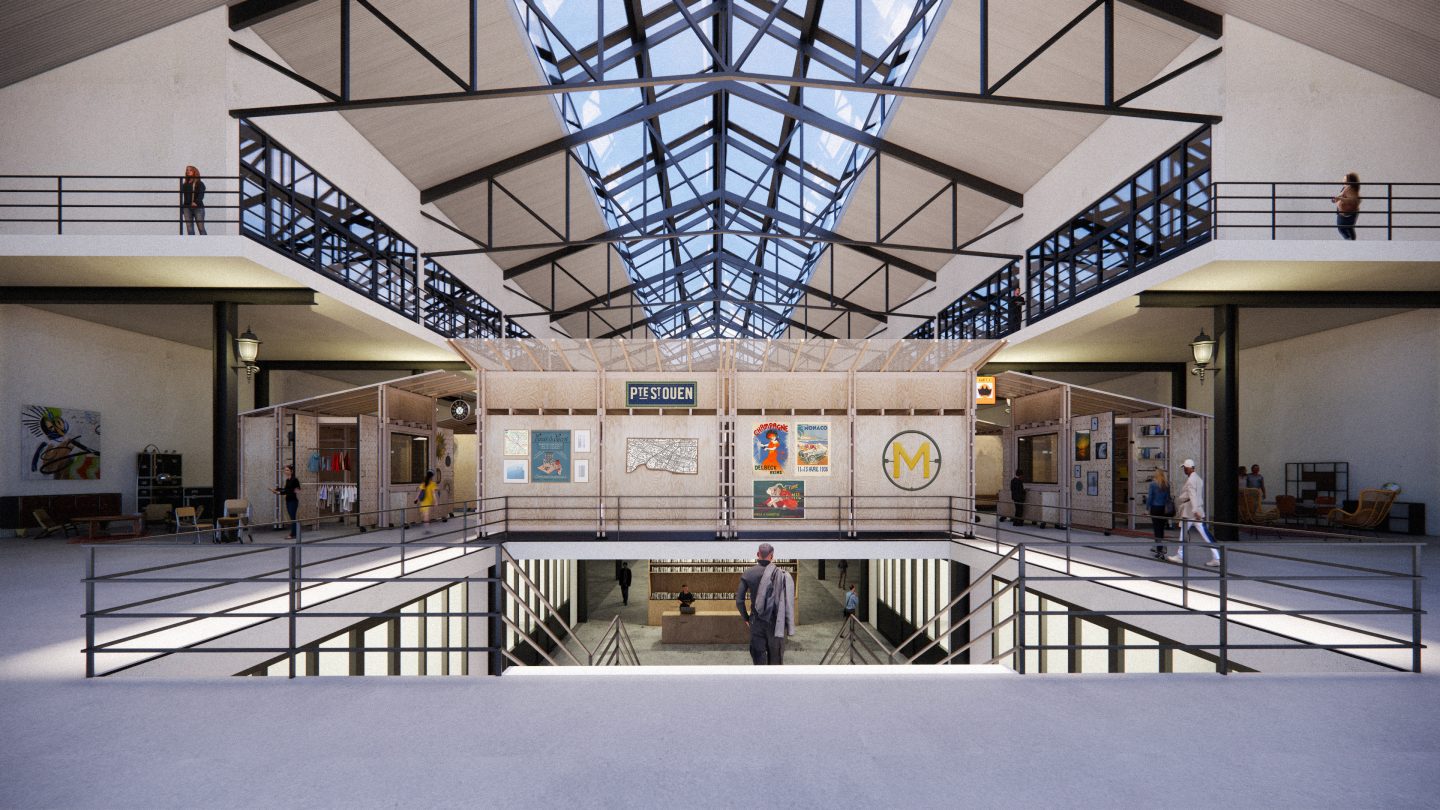 « À la Puce » propose un renouveau des Puces de Saint-Ouen à travers la création d’un nouveau lieu. Celui-ci s’inscrit sur la parcelle de l’actuel marché Malassis, à l’entrée de la rue des Rosiers, accessible par cette même rue mais également par la rue Jean Henri Fabre, offrant une possibilité de passage dans toute la longueur du bâtiment